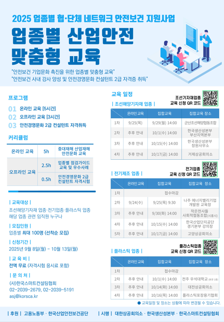 [무료교육] 업종별 산업안전 맞춤형 교육 (전기제조/프라스틱/조선해양기자재 업종)