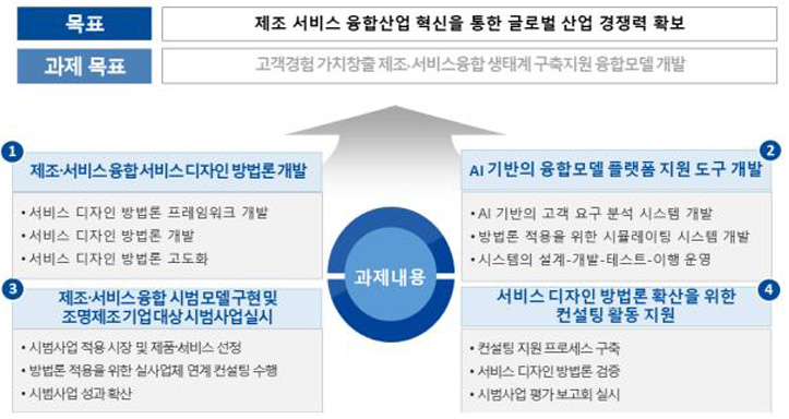- 고객경험 가치창출 제조·서비스융합 생태계 구축지원 융합모델 개발을 통한 제조·서비스 융합 산업의 혁신 및 글로벌 산업 경쟁력 확보